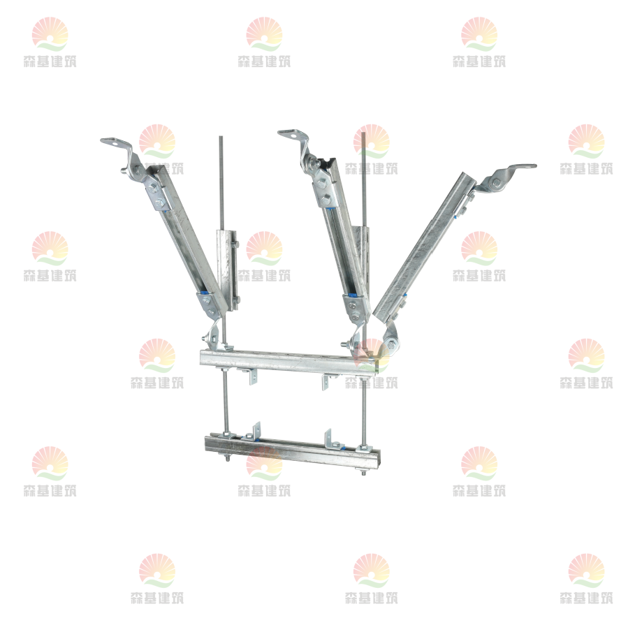 抗震支吊架在裝置形式上使用了三角形的穩(wěn)定性原理,把地震時(shí)的縱向力和橫向力進(jìn)行歸納承載,改變管線體系動(dòng)力特性由柔變剛,不只能使設(shè)備、管道更結(jié)實(shí),削減因地震引起的次生災(zāi)害,而且抗震支吊架從受力方向上分為縱向、側(cè)向支吊架,縱、側(cè)向支吊架。